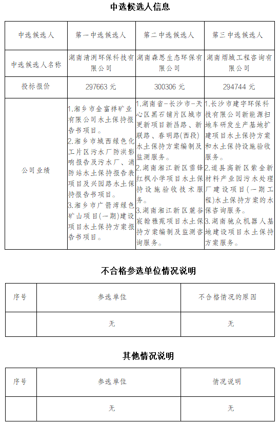 衡陽(yáng)(國(guó)際)眼鏡小鎮(zhèn)(標(biāo)準(zhǔn)廠房A1區(qū)項(xiàng)目、10KV配電工程項(xiàng)目)水土保持咨詢服務(wù)于2025年9月30日9:00在衡陽(yáng)國(guó)投4棟3樓評(píng)標(biāo)室進(jìn)行了比選開標(biāo)、評(píng)標(biāo)活動(dòng),評(píng)標(biāo)委員會(huì)按照比選文件及相關(guān)法律法規(guī)規(guī)定進(jìn)行評(píng)審,推薦以下三名中選候選人(排序),現(xiàn)將相關(guān)信息予以公示。